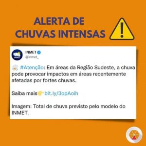 Segundo informações do Instituto Nacional de Meteorologia (INMET), entre este sábado (05/2) e pelo menos até a madrugada de terça-feira (08/2) são previstos acumulados de chuva superiores aos 150 mm em áreas da Região Sudeste do Brasil.