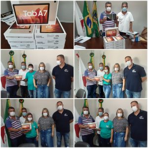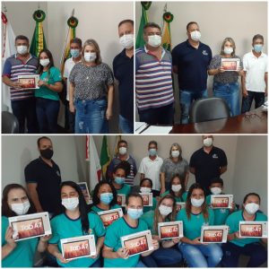 A entrega aconteceu na Prefeitura de Miradouro, no gabinete do Prefeito. O tablet foi repassado a mão de cada ACS pelo Prefeito Cloves Botelho, junto com o Vice-Prefeito Rogério Montezano, a Secretária Municipal de Saúde, Jane Agostini e o Coordenador da Atenção Primária da Secretaria Municipal de Saúde, Daniel Camacho.