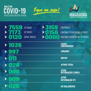 boletim epidemiológico de Miradouro, (04/02/2022).