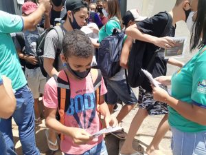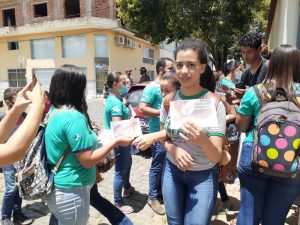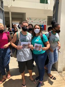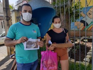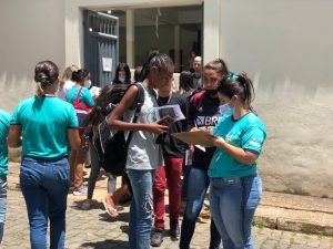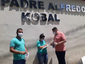 Uma tenda foi montada estrategicamente em frente à Escola Estadual Padre Alfredo Kobal (EEPAK), com cartazes afixados e profissionais da Secretaria Municipal de Saúde distribuíram panfletos às pessoas que passavam pelo local, além de abordarem os alunos da unidade ensino na saída do turno da manhã.