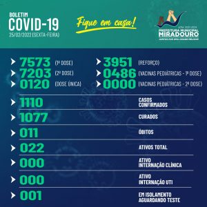 Confira abaixo o boletim epidemiológico, desta sexta-feira (25/02/2022).
