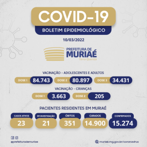 Boletim Covid: Números completos em Muriaé (10/03/2022):