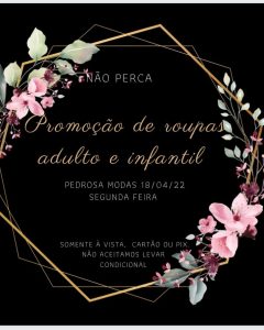 Cidade Destaque 5 Promoção de roupas adulto e infantil na Pedrosa Modas 12 de abril de 2022 By: miradouronotícias.com.br