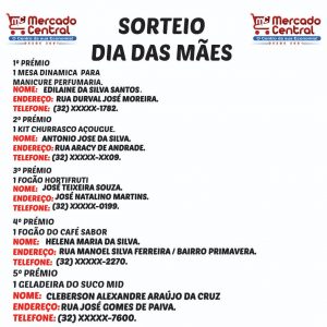 Cidade Destaque 4 Confiram o sorteio do dia das mães no Mercado Central 7 de maio de 2022 By: miradouro notícias.com.br