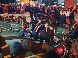 A FAMINAS, em parceria com a Polícia Militar de Muriaé, realizou, na noite de terça-feira (24), uma simulação realística de um acidente de trânsito. A ação, que simulou uma batida frontal entre duas motocicletas, com quatro vítimas, chamou a atenção de centenas de alunos que chegavam para as aulas.