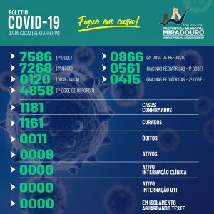 Confira abaixo o boletim epidemiológico, desta sexta-feira (27/05/2022).