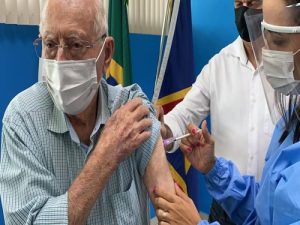 José Braz recebendo a segunda dose da vacina contra a Covid-19