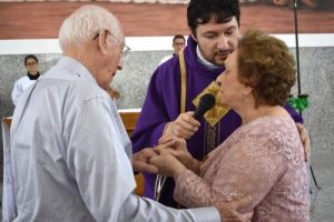 José Braz e dona Lédia durante a Missa das bodas de vinho