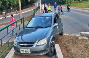 O impacto foi tão forte que o carro foi parar na calçada do canteiro. O motorista foi socorrido pelo Corpo de Bombeiros com um corte no pescoço e levado para o Hospital São Paulo.