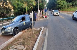 Um motociclista ficou ferido na manhã desta terça-feira (05), depois de chocar na lateral de um carro de aplicativo que cruzava o trevo da BR-356, na altura da Ponte do Brum.
