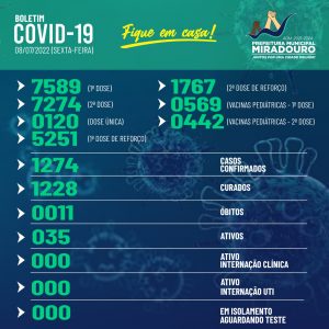 Confira abaixo o boletim epidemiológico, desta sexta-feira (08/07/2022).