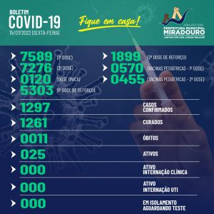 Confira abaixo o boletim epidemiológico, desta sexta-feira (15/07/2022).