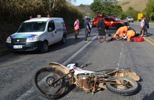 Um motociclista ficou gravemente ferido na manhã deste domingo (17), após se chocar na lateral de uma carreta, na BR-116, próximo ao posto F2.