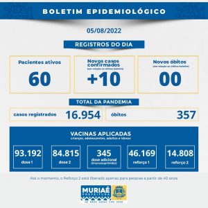 Muriaé teve 10 novos casos de covid registrados nas últimas 24 horas.