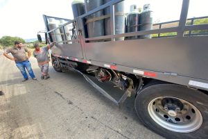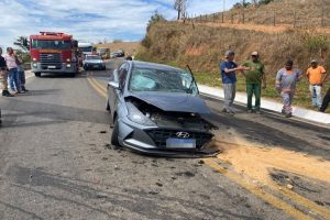 Uma mulher que estava dirigindo um carro ficou ferida nesta quarta-feira (17), após se chocar na lateral de um caminhão carregado de botijas de amônias vazias na BR-356, na altura da entrada do Canil Municipal.