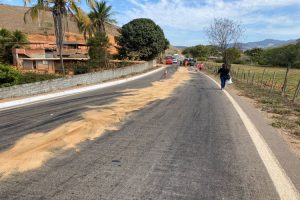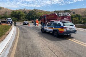 Após a colisão o carro rodou na pista e parou sentido contrário. O caminhão teve vazamento de óleo. Foi preciso jogar serragem na pista para agilizar na evaporação e evitar que outros acidentes ocorressem na via.