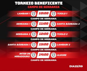Cidade Torneio beneficente no Campo de Serrania 25/09 8 de setembro de 2022 By: miradouronotícias.com.br