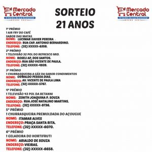 Cidade Cultura Destaque 1 Confiram o Sorteio dos ganhadores do aniversário de 21 anos do Mercado Central de Miradouro 24 de setembro de 2022 By: miradouronotícias.com.br
