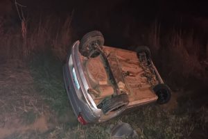 Um veículo Gol de cor prata capotou e caiu nas margens da BR 356 na noite deste sábado (24) na Serra de Pirapanema.