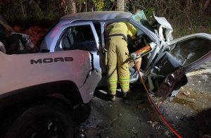 Colisão frontal entre veículos deixa um morto e dois feridos na BR-356, próximo ao trevo de Patrocínio do Muriaé
