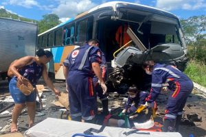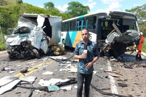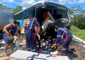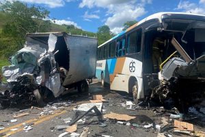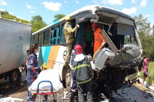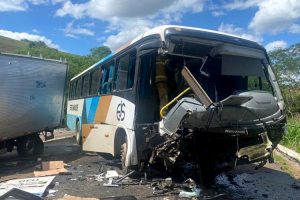 O motorista do ônibus informou que o acidente ocorreu após o motorista do caminhão tentar uma ultrapassagem sem sucesso e invadir a contramão.