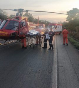 O motorista da caminhonete, de 67 anos, foi resgatado por helicóptero do CBMMG/SAMU e levado para uma unidade hospitalar.