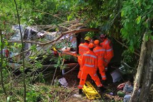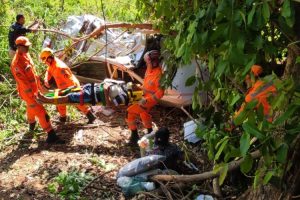 Casal de irmãos fica ferido após capotar com carro na BR-116 próximo a Itamuri