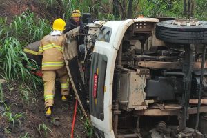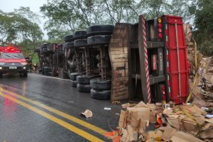 Um caminhão carregado de papelões tombou na tarde desta quarta-feira (02) na BR-356, próximo a Pedreira. Duas pessoas estavam no veículo, o motorista e a esposa. O motorista não teve ferimentos, já a esposa ficou presa entre as ferragens e precisou ser socorrida pelo Corpo de Bombeiros com ferimentos graves e levada às pressas para o Hospital são Paulo.