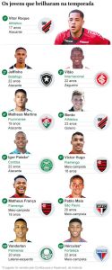 Vitor Roque, atacante do Athletico, lidera ranking elaborado pela equipe do GLOBO e especialistas convidados. Jeffinho, do Botafogo, e Vitão, do Internacional, fecham o pódio