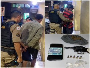 Três jovens foram presos na tarde desta segunda-feira (14), na cidade de Eugenópolis com arma e drogas.