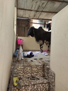 De acordo com os militares, o animal estava pastando em uma área de talude acima da edificação, quando caiu no telhado e ficou preso no terraço. Foi necessário a construção de uma rampa improvisada e abertura de um buraco na parede para que o animal pudesse sair do local.