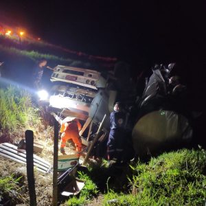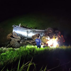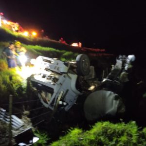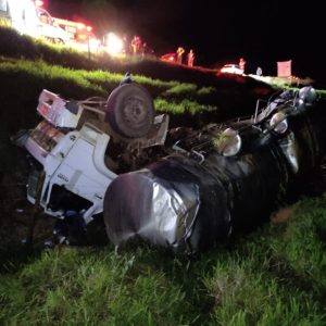 Um caminhão tanque carregado de leite tombou na BR-356 próximo a ponte da Embaúba na noite desta sexta-feira (18) e o motorista acabou falecendo no local.