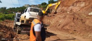 Os serviços estão sendo executados sob o monitoramento da Defesa Civil a fim de que seja feito com segurança e proteção, tanto para quem está em operação quanto para as pessoas e veículos que transitam pelo local.