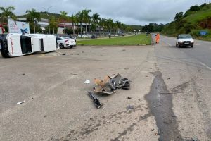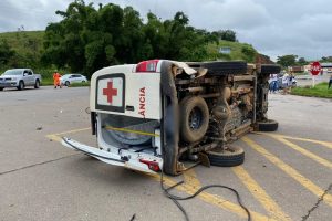 Um grave acidente envolvendo uma ambulância de Rosário da Limeira e um carro de passeio ocorreu na manhã desta quarta-feira (25) na BR-116, na altura do trevo que dá acesso a Faminas e a Fundação Cristiano Varella. O impacto foi tão forte que a ambulância chegou a tombar na via.