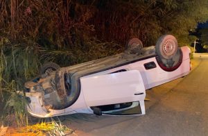 Para evitar a colisão, bateu no barranco capotou e parou com as quatro rodas para cima.