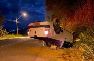 Um veículo Saveiro capotou na BR-356, próximo a entrada do bairro Marambaia na madrugada deste domingo (05).