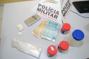 Os militares, ao acessar a casa, localizaram duas porções de cocaína, uma balança de precisão, mil reais em dinheiro e materiais para endolação.
