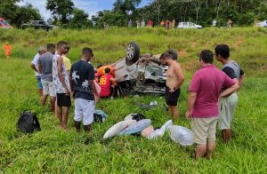 BR-356: capotamento deixa duas mulheres feridas na Serra dos Pedrosas