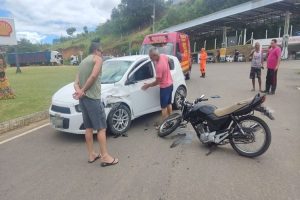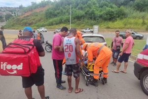 Um motoboy ficou ferido na tarde deste sábado (18) após colidir de frente com um carro que saia de um posto de Combustíveis localizado às margens da BR-356, na entrada do bairro Marambaia.