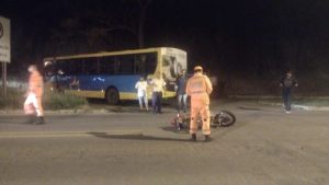 Um motociclista ficou gravemente ferido após colidir com um ônibus coletivo na BR-356 próximo ao trevo do Vitrines na noite desta quinta-feira (23).