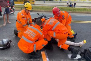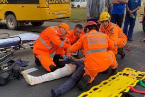 O impacto foi tão forte que chegou a furar o tanque de combustível. O motociclista teve fraturas nos braços e pernas. Ele foi resgatado por uma equipe do Corpo de Bombeiros e levado às pressas para o Hospital São Paulo.