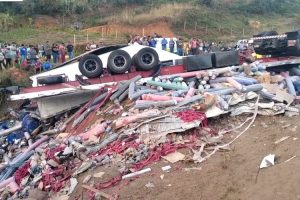 O motorista que transportava diversos produtos, perdeu o controle do caminhão ao passar pela curva conhecida como “Deus me Livre” e ficou preso entre as ferragens por aproximadamente três horas. Foi preciso duas equipes do Corpo de Bombeiros trabalharem juntas para remover o rapaz dos destroços.