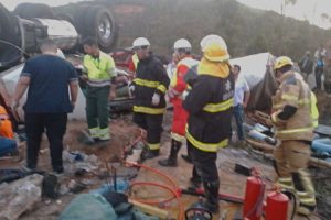 O motorista que transportava diversos produtos, perdeu o controle do caminhão ao passar pela curva conhecida como “Deus me Livre” e ficou preso entre as ferragens por aproximadamente três horas. Foi preciso duas equipes do Corpo de Bombeiros trabalharem juntas para remover o rapaz dos destroços.