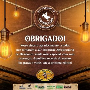 A 33ª Exposição Agropecuária de Miradouro, que aconteceu de quinta-feira a domingo, 10 a 13 de agosto, contou com uma programação diversificada e reuniu público recorde no Parque Amaro Acelino de Andrade.