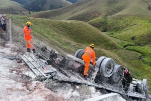 Um caminhão carregado de calcário tombou na tarde desta terça-feira (15) na BR-356, na Serra de Pirapanema. As primeiras informações apontam que o motorista perdeu o controle e desceu a ribanceira. Ele não resistiu aos ferimentos e morreu ainda no local. Sua identidade ainda não foi divulgada.