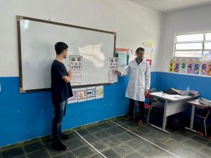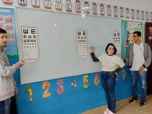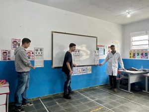 Foram abordados os temas Saúde Ocular, com aplicação de avaliação de acuidade visual nos alunos e ainda, o tema Animais Peçonhentos.