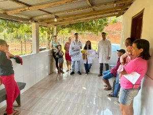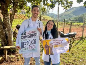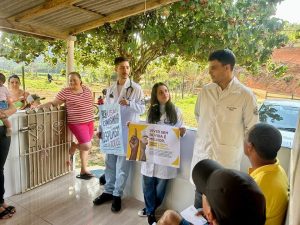 A atividade aconteceu no pátio da igreja católica e foi conduzida pelos residentes de Medicina do Centro Universitário Faminas, Ana Clara Milagres e Arthur Bombier, junto com Dr. Igor Rabelo, médico.
