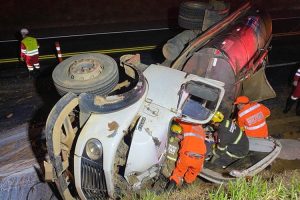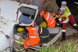 Uma ambulância do Samu com a presença de um médico foi ao local realizou os primeiros atendimentos a vítima que estava consciente, na sequência profissionais da Eco Rio Minas conduziu o motorista para o Hospital São Paulo com alguns ferimentos.