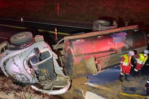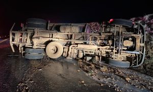 Um caminhão carregado de leite tombou na noite deste sábado (02), na BR-116 altura do Vale das Águas. Segundo informações o motorista seguia sentido a cidade de Muriaé quando perdeu o controle da direção invadiu a contra mão e bateu em um barranco.