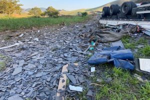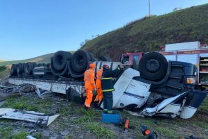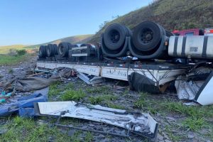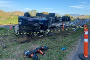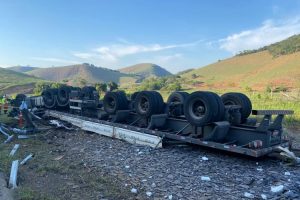 Carreta carregada de vidro com destino a Muriaé tomba na altura de Itamuri e motorista morre no local
